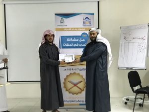 أقامت الجمعية يوم الإثنين الموافق 7 / 4 / 1439 هـ دورة تدريبيّة بعنوان ”حل مشكلة التسرب في الحلقات“ بمعدل 5 ساعات, قدّمها المدرّب / علي ناصر جده, وبحضور 19 متدرّباَ من مشرفي ومعلمي الحلقات, ضمن مشروع (بناء القدرات) برعاية مؤسسة محمد بن صالح الشاوي الخيرية.