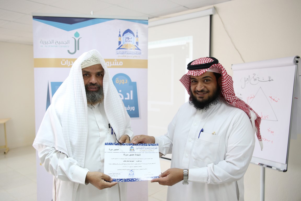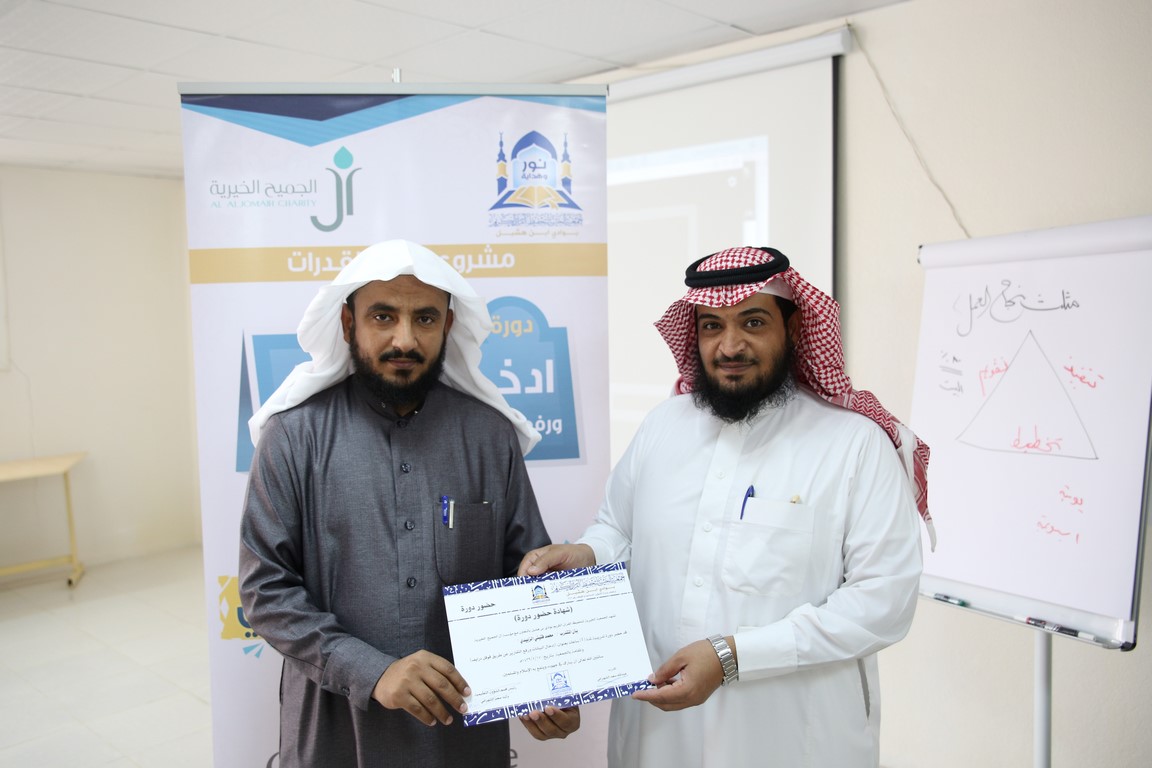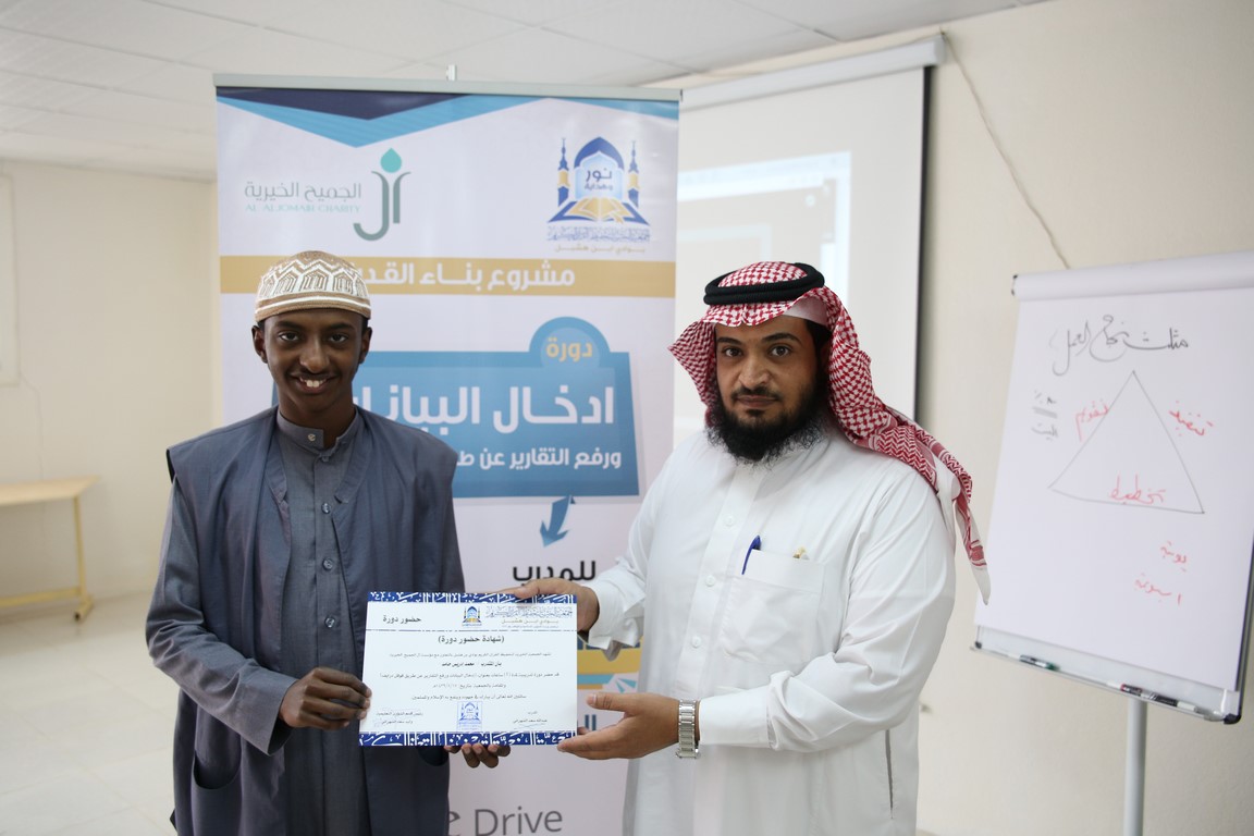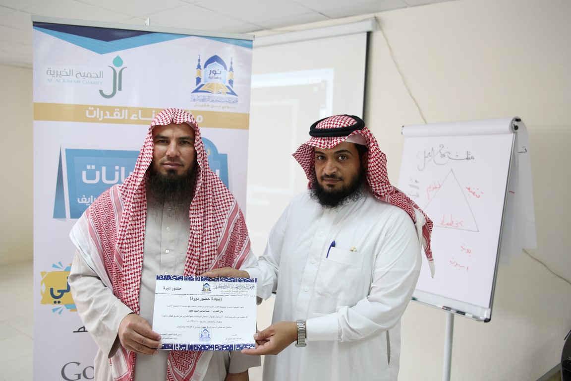 أقامت الجمعية مساء اليوم السبت الموافق 17 / 5 / 1439 هـ دورة تدريبيّة بعنوان ”ادخال البيانات ورفع التقارير عن طريق قوقل درايف“ بمعدل 4 ساعات, قدّمها المدرّب / عبدالله سعد الشهراني, وبحضور 10 متدرّبًا من معلمي الحلقات, ضمن مشروع (بناء القدرات) برعاية مؤسسة آل الجميح الخيرية.